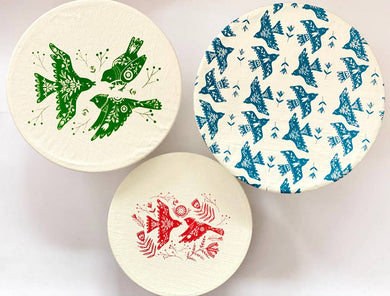 Set of 2 Fabric bowl covers PACKAGED/XL and LG/ Folk birds
