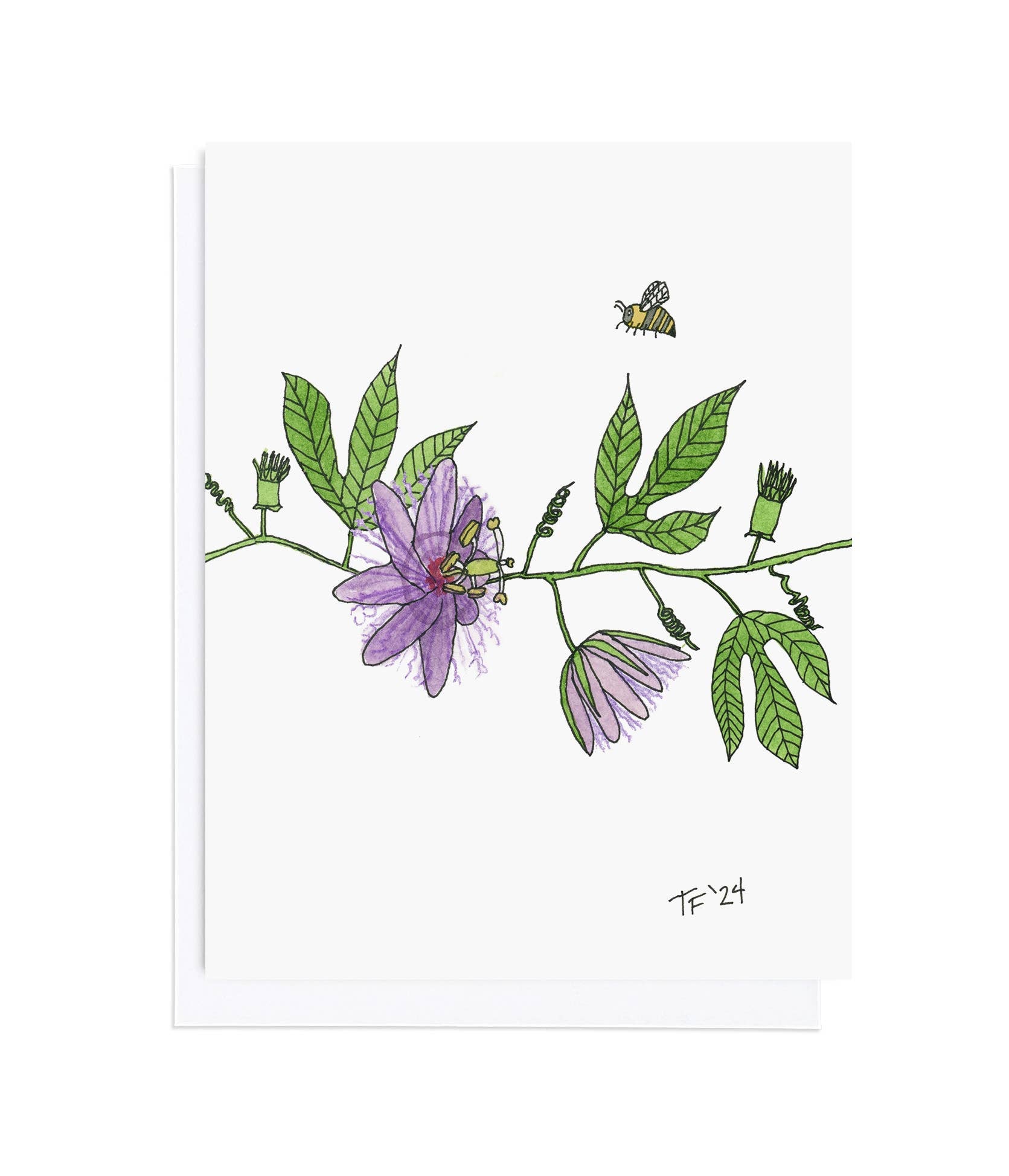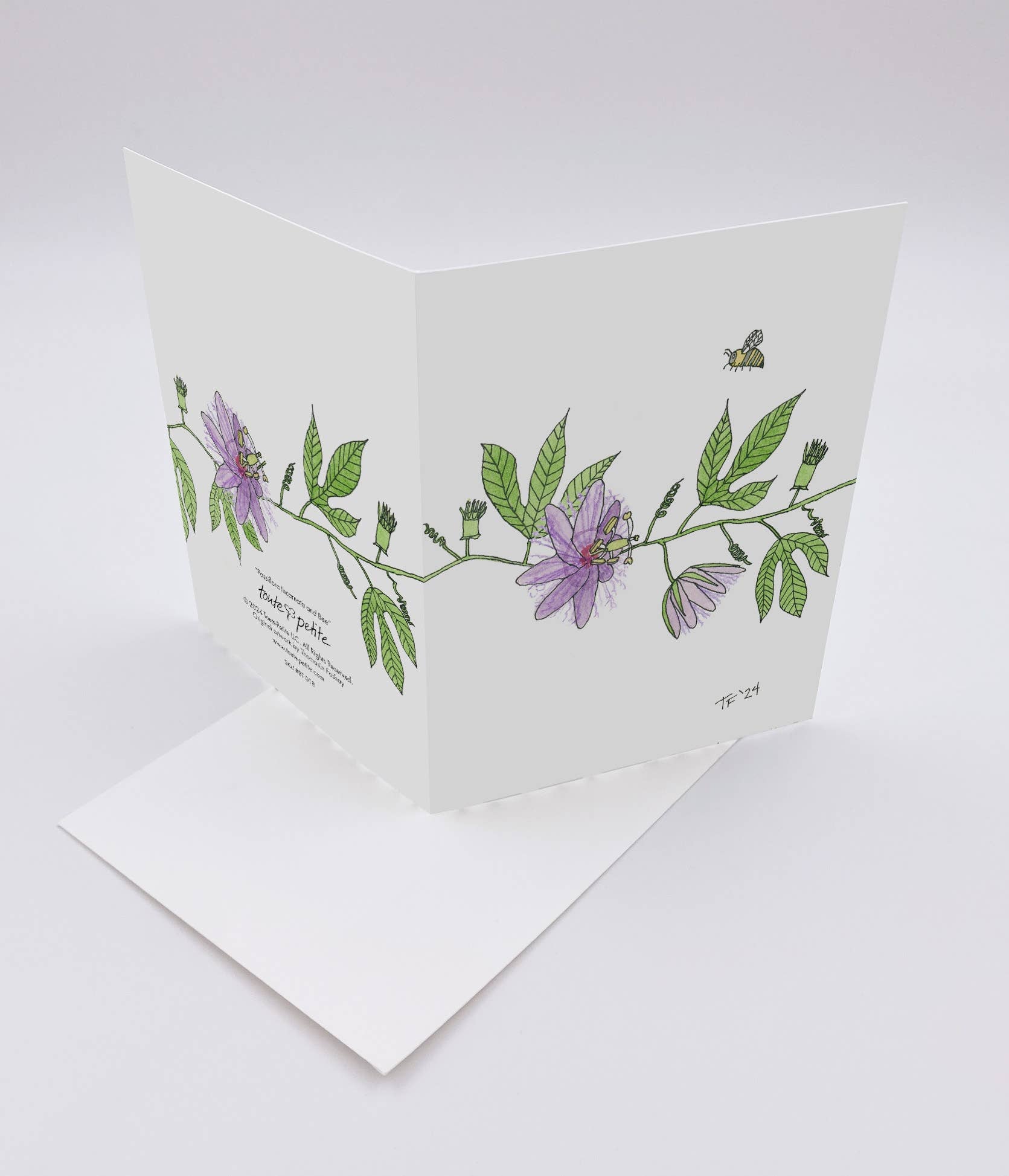 The common name for this native plant is Passion Flower. This beautiful greeting card is as pretty on the back as it is on the front. This hand-illustrated botanical design continues to the back of the card, part of the native plant and pollinator series. This card is great for all occasions including mother's day, get well , thank you notes, everyday and just because. Toute-Petite is a woman-owned stationery and small gift brand based in Charlottesville, Virginia. Blank Inside