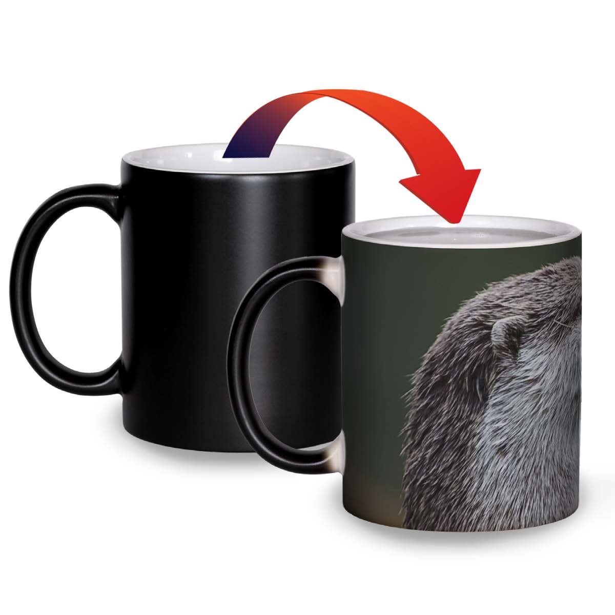 Each mug takes you on a journey. When cold or room temperature they are a solid color with a silver illustration. Just add hot coffee/tea and watch the transformation. Vibrant color appears and the experience unfolds.
