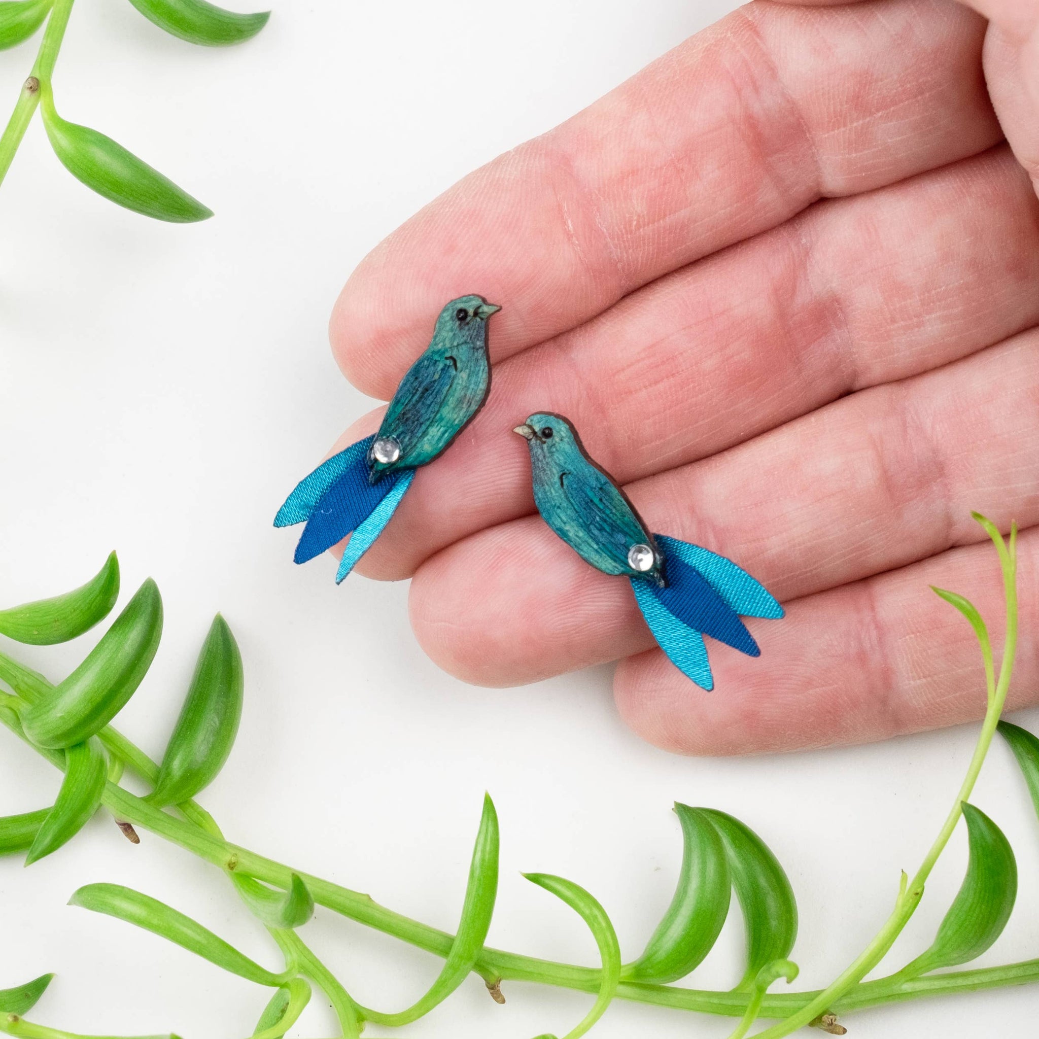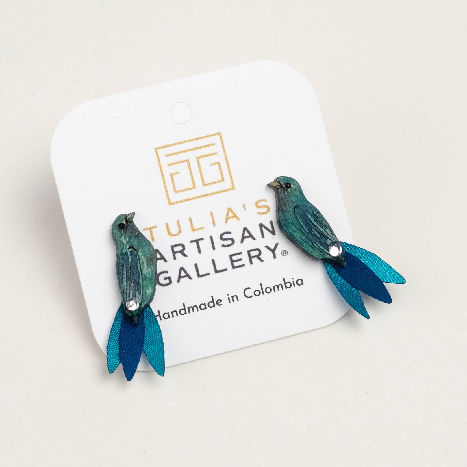 Earrings handmade in Colombia of painted gourd and laser-cut fabrics. Designed and crafted by Indigenous Mokaná, Afro-Colombians, and mother heads of households in Northern Colombia. Proud member of the Fair Trade Federation & Chicago Fair Trade. Posts are 316 grade Stainless Steel.